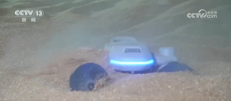 和流动检验车同步展开服务的还有眼前这个“机器人组合”。这台在粮面上来回穿梭的平仓机器人是一位“整理高手”,它能够在巨大的粮堆上自主行走和作业,通过灵活的螺旋轮和刮板,将原本起伏的粮面自动推平。另一旁,工作人员正使用多参数粮情AI监测系统为粮仓做“体检”,只需要将探杆插入粮堆,几分钟内就能形成一份详尽的“体检报告”。
