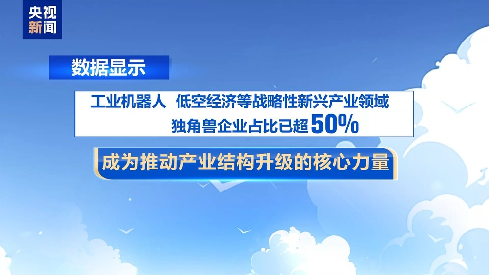 数据显示,工业机器人、低空经济等战略性新兴产业领域的独角兽企业占比已超50%,成为推动产业结构升级的核心力量。